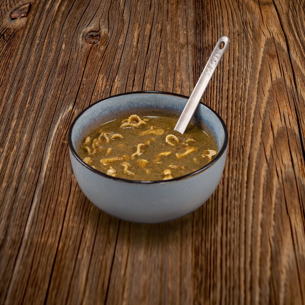 | Materiál | 34% cestoviny (krupica z tvrdej pšenice), 23% šampiňóny, cibuľa, mrkva, 7% šampiňónov (hríb, hríb), kyslá smotana, 3% sušené huby (hríb, hríb), 3% syr Gorgonzola (CHOP), petržlenové listy, soľ |