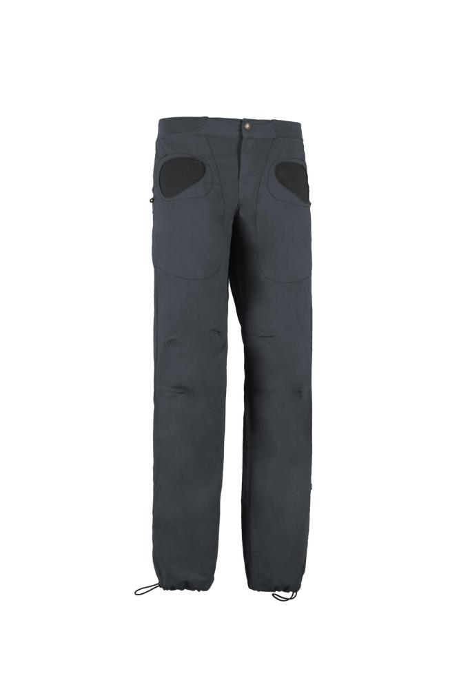 Moderné pánske nohavice užšieho strihu RONDO SLIM PANTS sú vyrobené z popelínovej tkaniny z 97% organickej bavlny a 3% elastanu. Nohavice majú elastický pás so zapínaním a nastaviteľný spodný lem nohavíc. Na oboch bokoch majú pútka na kefku. Vrecká sú v jemne kontrastnom prevedení (vnútorná látka s potlačou) a na zadnom vrecku je vyšité logo E9. Sú vyrobené 100% v Taliansku s minimálnym znečistením životného prostredia as dôrazom na extravagantné prevedenie, unikátny dizajn a komfort pri lezení.