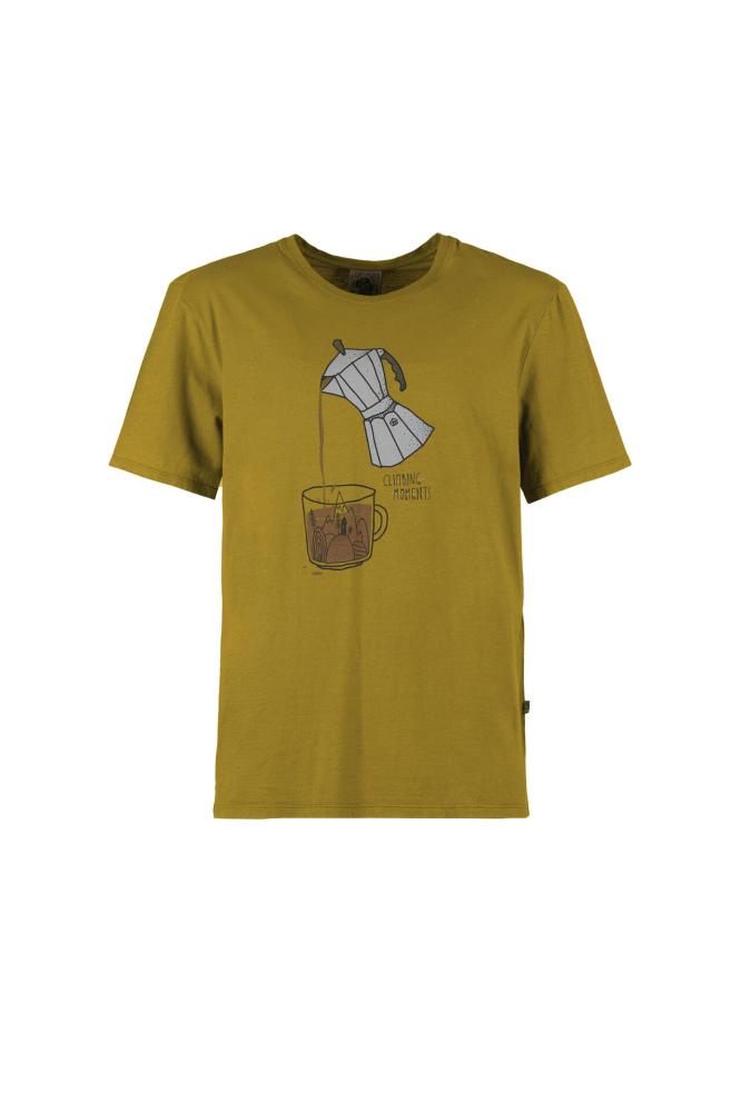 Moderné pánske tričko s krátkym rukávom CUP T-SHIRT je vyrobené zo 100% organickej bavlny. Tričko má na hrudi štýlovú potlač mokka kanvy nalievajúcu kávu do hrnčeka, ktorý vezme za srdce všetkých milovníkov pitia kávy v prírode. Je vyrobené 100% v Taliansku s minimálnym znečistením životného prostredia as dôrazom na extravagantné prevedenie, unikátny dizajn a komfort pri lezení.